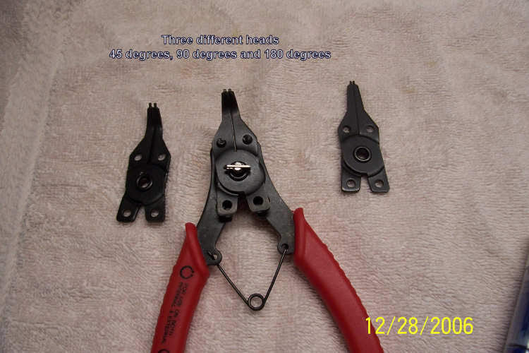 First, run out to your local auto parts store and buy an E-Ring tool. I got this one at Auto Zone for about $10.00 and it comes with three heads to allow you to get into difficult places if the connector is in the plane. (Saw one at Harbor Freight the other day for under $5.00)